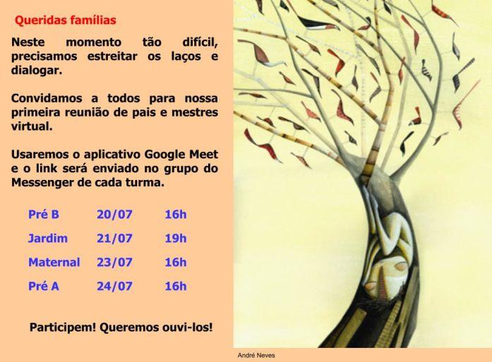 Publicado: 6 de agosto de 2020 - 13h58 06/ago Reunião de pais virtual VALOR: Grátis PORTAIS UME Derosse José de Oliveira Repostando evento
