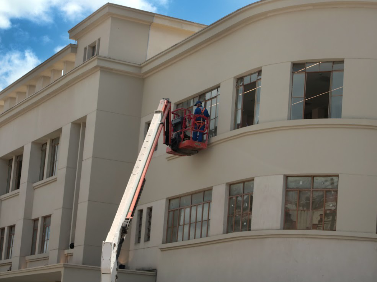 Toda a fachada do prédio foi recuperada. Para os acabamentos, por indicação dos órgãos de defesa do patrimônio histórico, foi utilizada massa mineral raspada. O produto, a base de silicato de potássio, mineral duro que fornece um acabamento rústico e texturizado, deixou o exterior com a cor bege claro, seguindo o tom original do edifício.