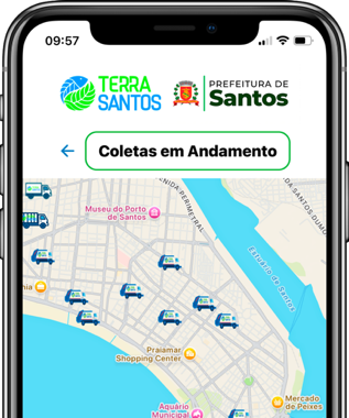 Acesse o app Conecta Terra Santos para acompanhar as coletas em andamento e solicitar serviços de coleta
