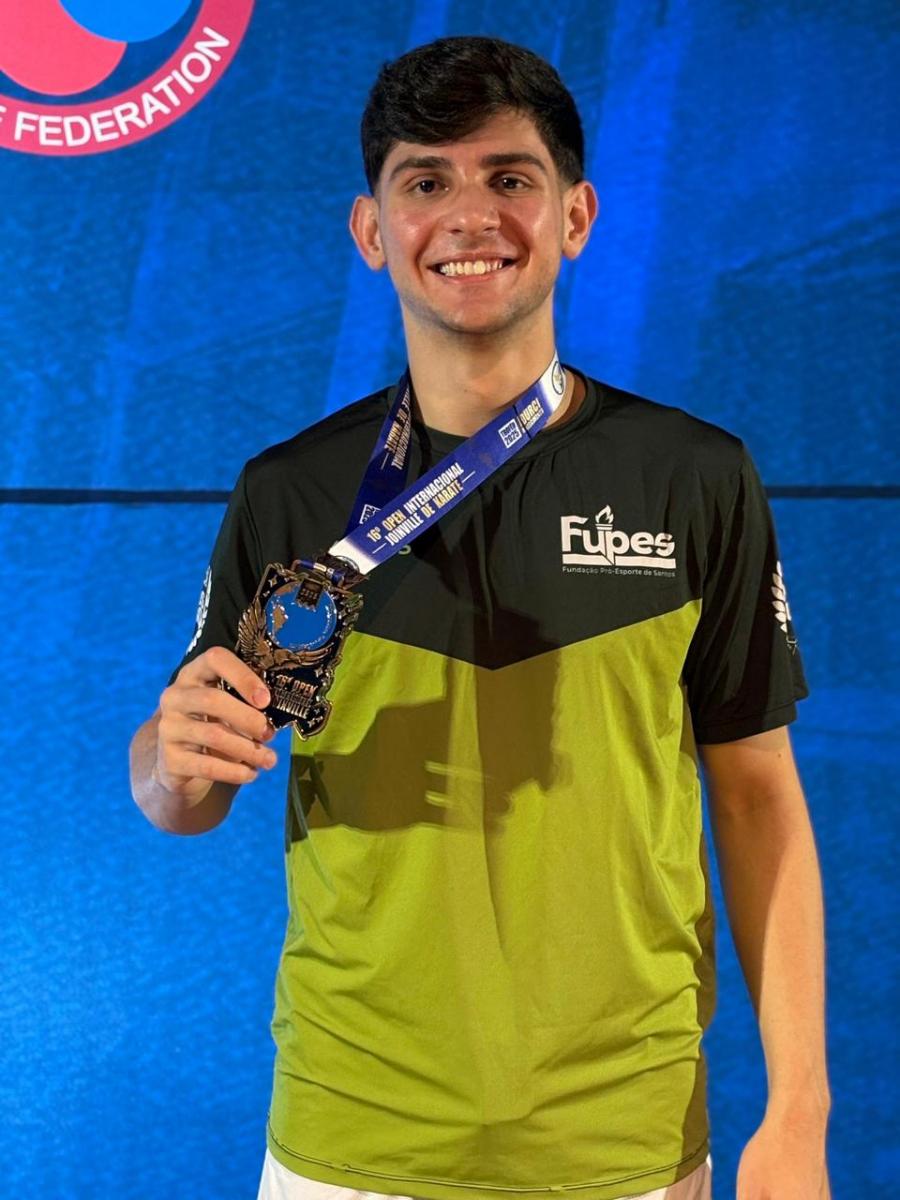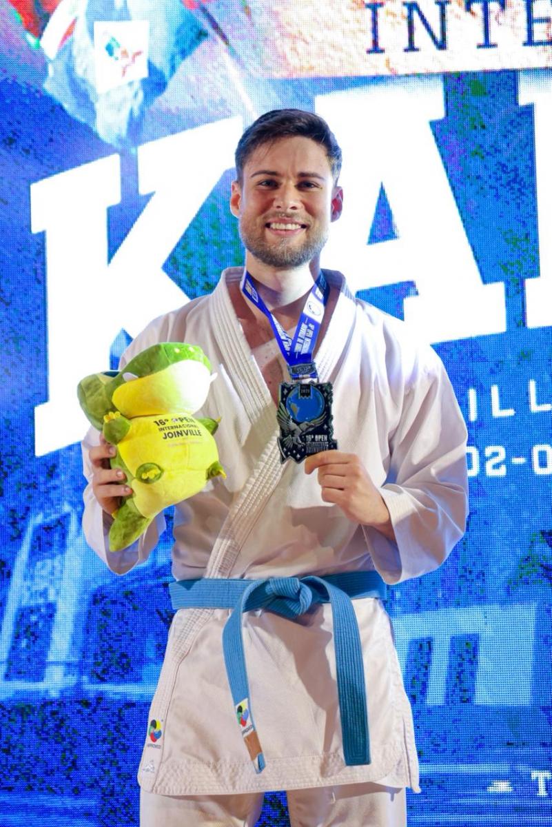 Outros dois caratecas da Fupes também garantiram pódio. Rafael Nascimento (Associação Resistência- na foto abaixo) foi o vice-campeão kumite masculino -60kg, enquanto Matheus Bortolomasi (Associação Resistência) garantiu bronze no Kumite masculino -75kg.