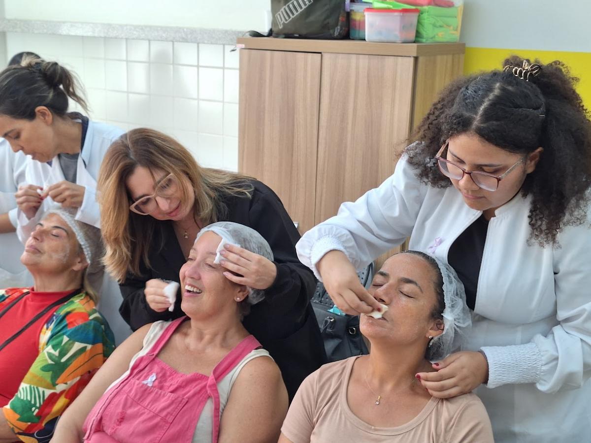 A programação também contou com ações de autocuidado realizadas por alunas de biomedicina e estética. As participantes receberam orientações de higiene e cuidados com a pele, além de auriculoterapia - técnica que estimula pontos específicos da orelha para auxiliar no tratamento de questões físicas, mentais e emocionais.