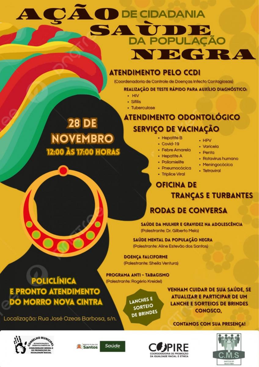 Como parte das comemorações do Mês da Consciência Negra, Santos realizará atividades voltadas à saúde e bem-estar, sexta-feira (28), nas regiões do Centro Histórico e Morros.