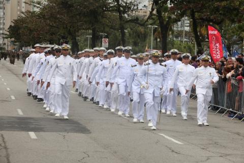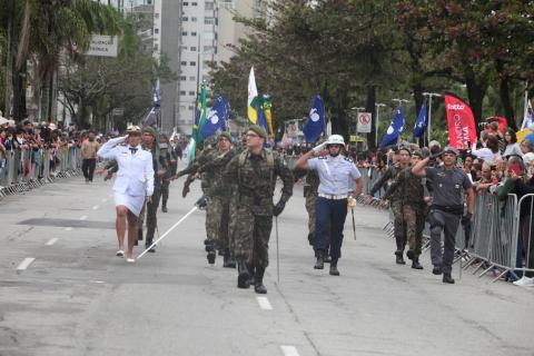 Em celebração aos 202 anos da Independência do Brasil, o desfile cívico-militar de 7 de setembro, na orla da praia de Santos, reuniu centenas de pessoas neste sábado. Bandeiras verde-amarelas, acenos e muitos aplausos de moradores e turistas deram o tom do evento realizado pela Prefeitura na Avenida Bartolomeu de Gusmão, entre os canais 5 e 6.