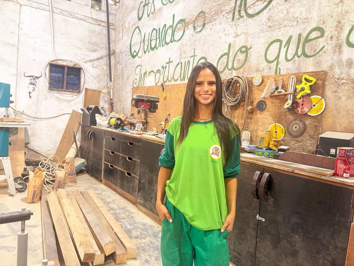 Na unidade da Zona Noroeste, a jovem Kethelyn dos Anjos, de 22 anos, vem construindo sua trajetória profissional na Ecofábrica, onde ingressou após iniciar um curso de serralheria e descobrir na marcenaria a área em que sempre quis atuar.