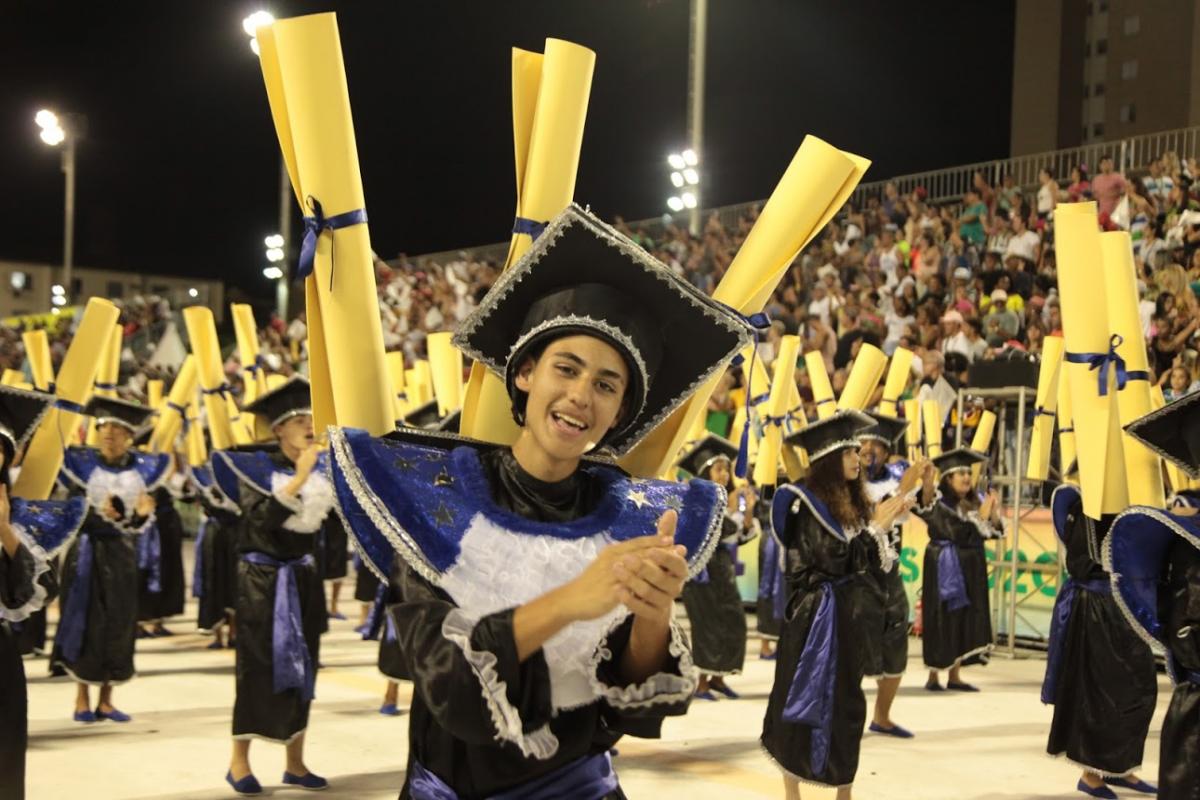 A agremiação das cores azul, verde e branco destacou todas as etapas na vida de quem se forma nesse centro de aprendizagem, desde a situação de vulnerabilidade social no início, a formação e a transformação de vida com base no conhecimento.