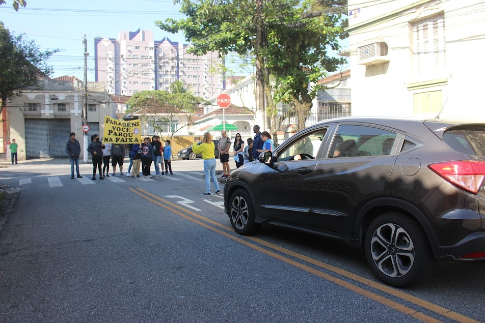 Estudantes de Santos aplaudem motoristas que respeitam a Faixa Viva