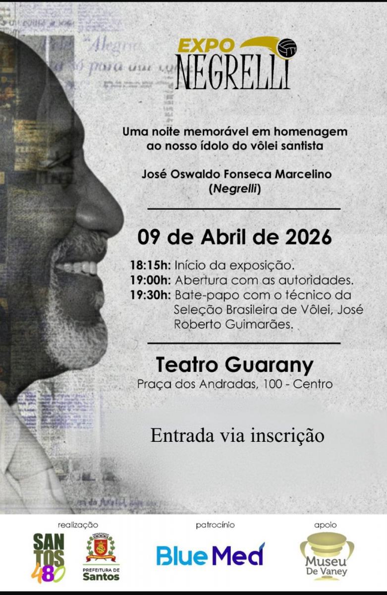 A história de um dos maiores nomes do vôlei brasileiro ganha um capítulo à altura de sua grandeza. A Prefeitura de Santos abre, na próxima quinta-feira (9), a Expo Negrelli, homenagem a José Oswaldo da Fonseca Marcelino, o Negrelli, ídolo do esporte santista e referência nacional dentro e fora das quadras.