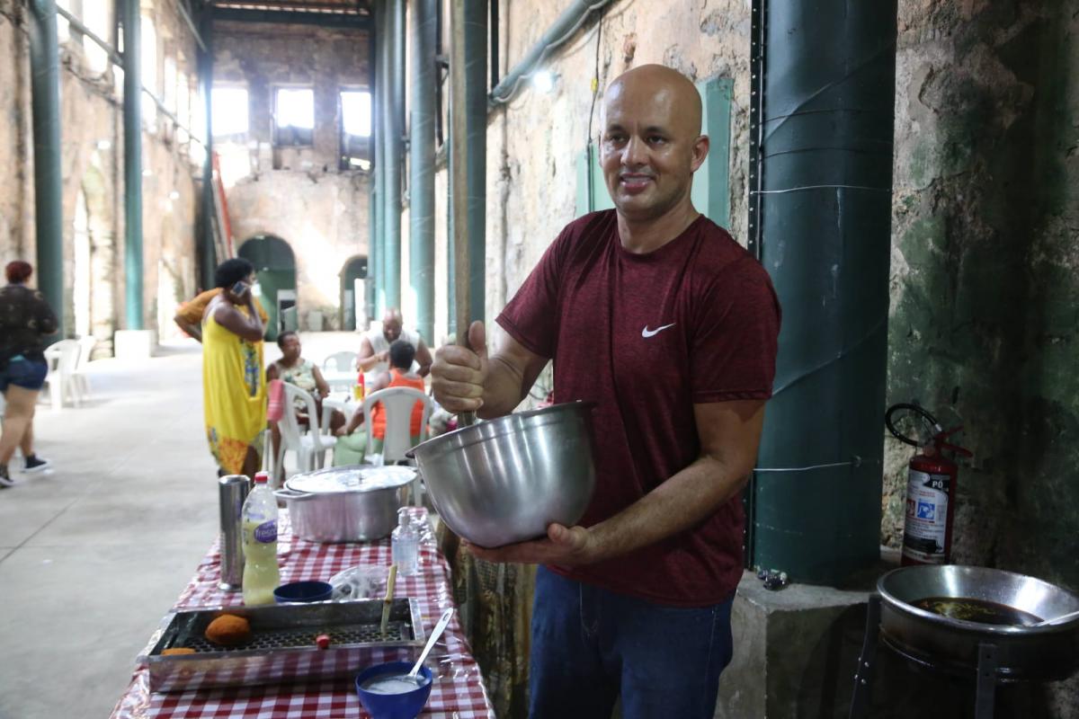 O chef Ednaldo Santos Souza explicava aos visitantes os detalhes da iguaria e sua história. "É uma comida de raiz africana desenvolvida na Bahia. No continente africano é conhecido como akara".