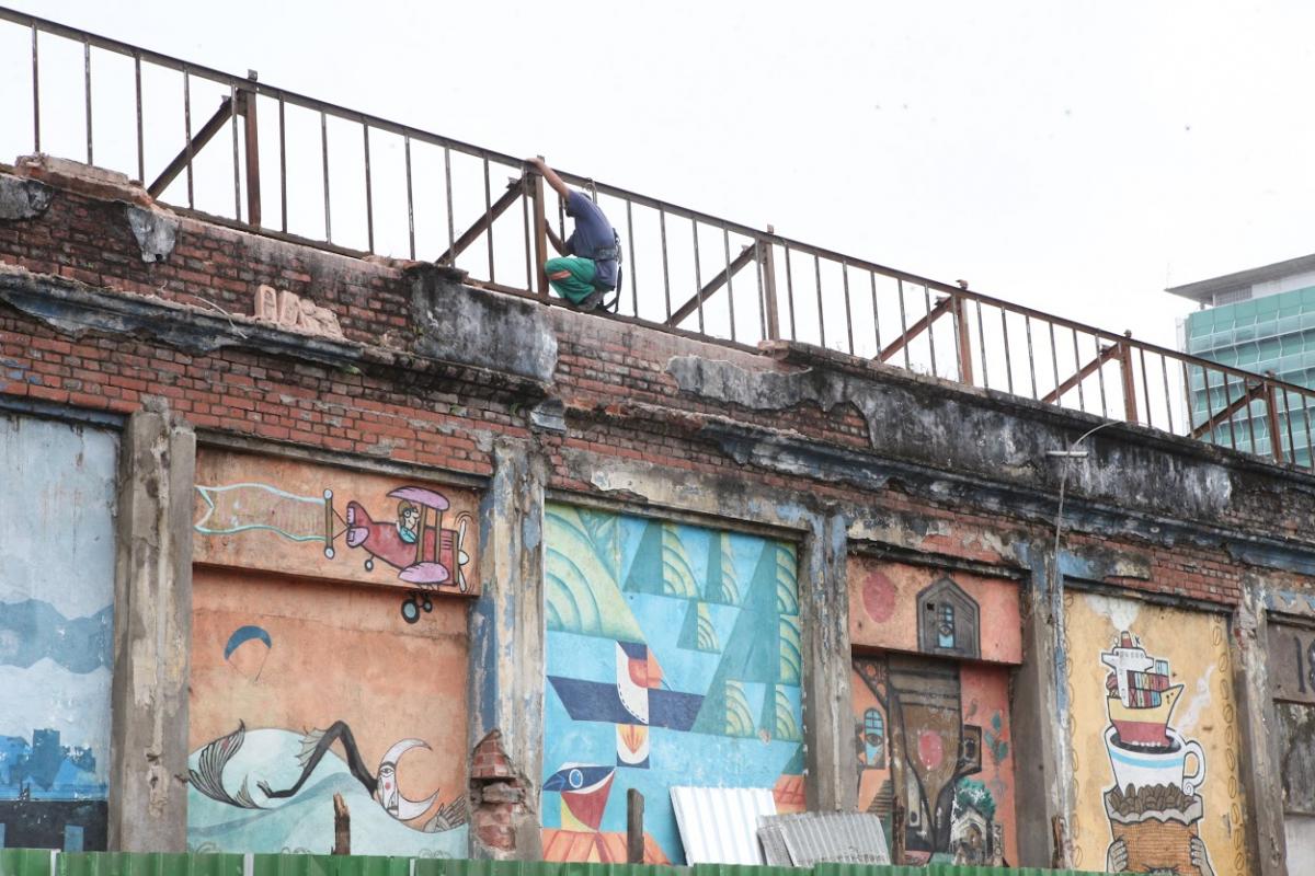 Os trabalhos começaram com a limpeza da vegetação da área, serviço acompanhado pela Secretaria de Meio Ambiente Meio Ambiente, Desenvolvimento Urbano e Sustentabilidade (Semam). Depois, foram retiradas todas as telhas do telhado para a recuperação das tesouras metálicas, estruturas triangulares que compõem o esqueleto de sustentação das telhas. Em paralelo, avança a limpeza do terreno e, na sequência, será feita a terraplanagem.