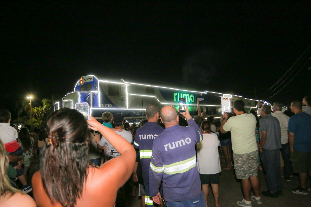 A locomotiva da operadora ferroviária Rumo, associada à Ferrovia Interna do Porto de Santos (FIPS), ficará estacionada durante toda a duração do show, sendo possível tirar fotos e fazer filmagens com ela e Papai Noel, respeitando as recomendações de segurança.