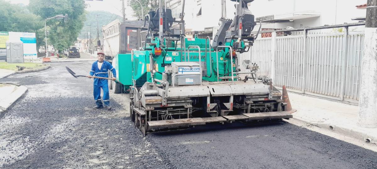 Com a aplicação de binder, mistura asfáltica que funciona como ligação de pavimentos, começaram nesta terça-feira (5) os serviços de renovação asfáltica da Avenida Pinheiro Machado entre as ruas Delfino Stockler de Lima e Antonio Bento de Amorim, denominado trecho 8 do projeto da Prefeitura, que contemplará os 2.240m do canal 1.