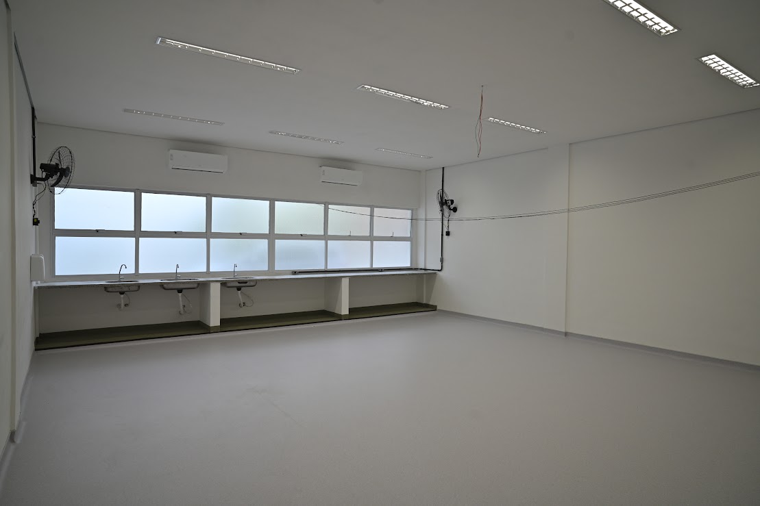 "Os serviços envolveram a infraestrutura hidráulica e a reforma dos sanitários, a recomposição de todas as instalações elétricas, rede de lógica, sala de atividades, sala de dança, com barras de apoio, espelho e proteção acústica; pintura interna, além de climatização da unidade. Na área externa foram executados o piso intertravado e os novos portões da entrada”, diz o engenheiro Bruno Watanabe Ono, fiscal da obra de reforma do edifício.