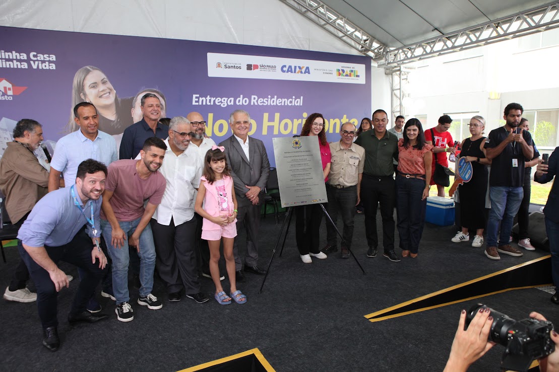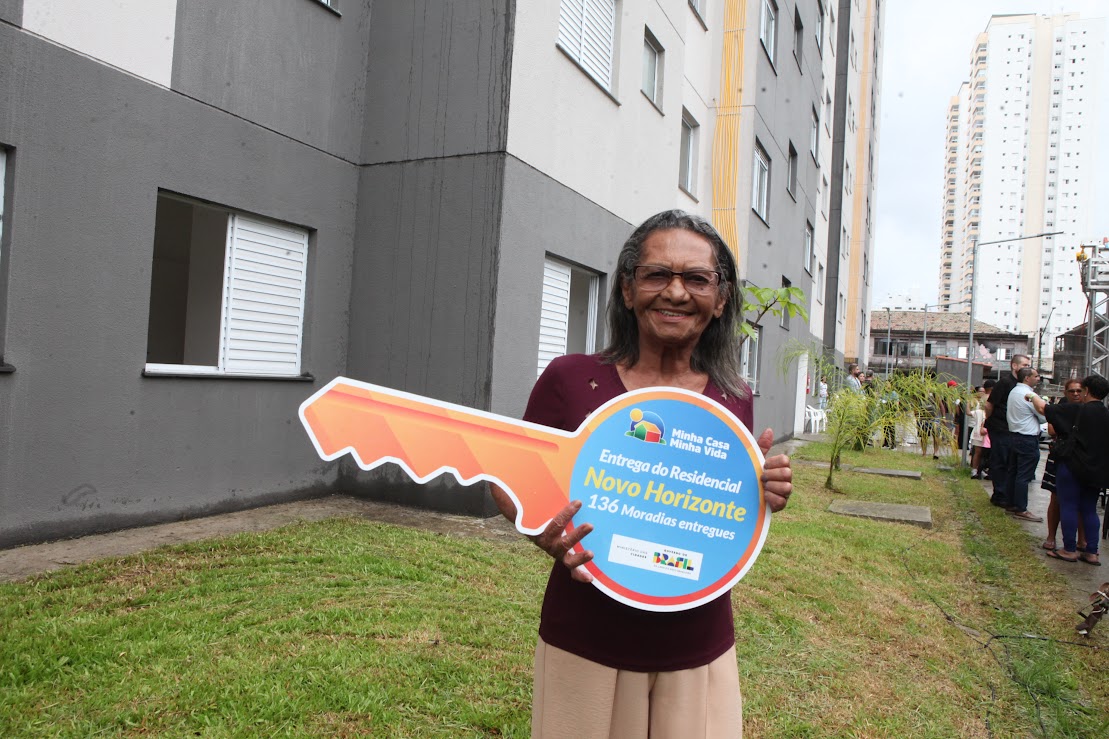 "Esperei a vida inteira por esse momento. Hoje posso dizer que tenho um lar de verdade”. A fala emocionada da aposentada Luiza Francisca dos Santos, de 82 anos, moradora da Vila Sapo há mais de 19 anos, resume o sentimento das famílias que receberam, nesta sexta-feira (22), as chaves do Residencial Novo Horizonte, Ponta da Praia, em Santos.