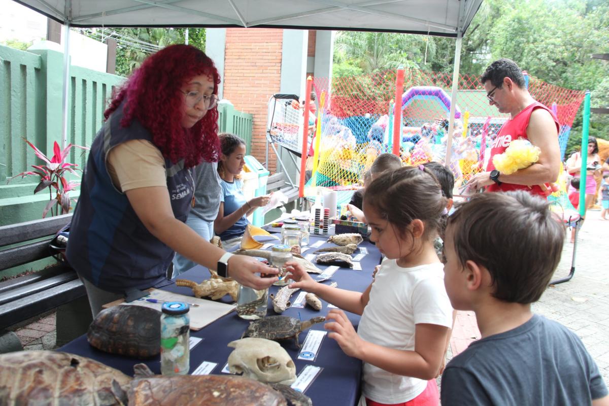 Logo pela manhã, a frente do parque ganhou clima de festa com a apresentação de capoeira e uma miniaula com o professor Igor Perrone, seguida de oficinas de pintura e dobradura, atividades infantis e tenda do Aquário Municipal.
