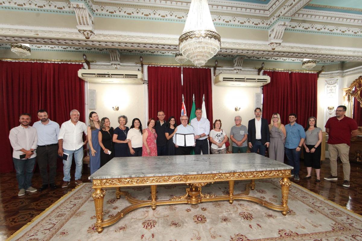 A Prefeitura de Santos assinou duas parcerias, nesta terça-feira (9), para garantir melhorias para a rede pública de ensino, incluindo a continuidade das obras da Unidade Municipal de Educação (UME) Hilda Rabaça (Vila Haddad). Os acordos também incluem a instalação de coberturas nas quadras poliesportivas das UMEs José da Costa Silva e Sobrinho (Piratininga) e Lourdes Ortiz (Aparecida).