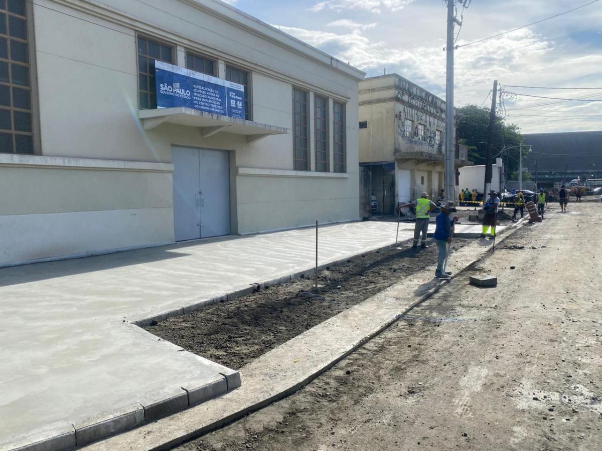 Pavimentação do entorno do Mercado Municipal de Santos é renovada
