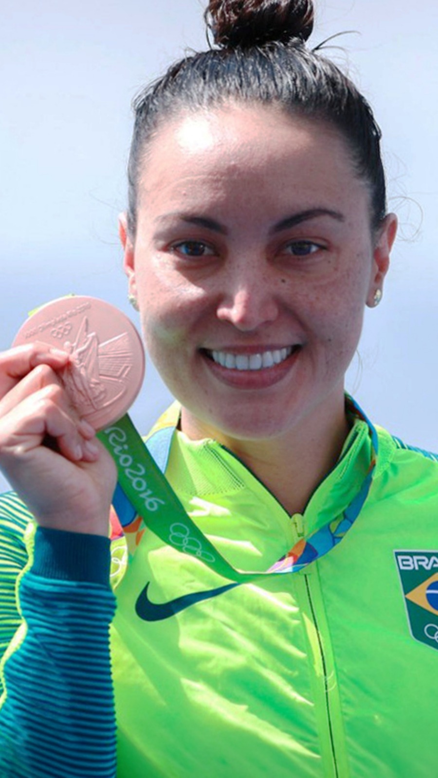 Nascida em 1983, Poliana Okimoto fez história na maratona aquática e entre seus grandes feitos está a primeira medalha olímpica individual feminina na natação, com o bronze nos Jogos Rio 2016, quando defendia Santos pela Unisanta. Em 2006, ganhou a primeira medalha da história do Brasil nos 10km do Mundial de Nápoles. Nos Jogos Pan-Americanos de 2007, conquistou a primeira medalha do Brasil no evento. Em 2009, venceu nove das 11 etapas da Copa do Mundo. recorde em número de vitórias no mesmo ano e a primeira brasileira a vencer a competição. Em 2013, no Mundial de Barcelona, foi ouro nos 10 km, prata nos 5 km e bronze por equipes. Tanto em 2009 quanto em 2013, foi eleita pela FINA como a Melhor Nadadora de Águas Abertas do Mundo.
