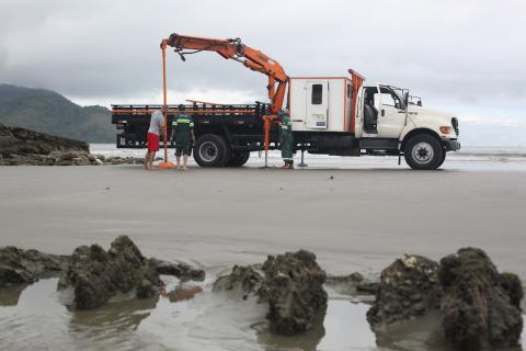 “A equipe iniciou os trabalhos por volta das 6h, aproveitando a maré baixa”, afirmou Flávio Pereira Morgado, coordenador técnico da Subprefeitura da Zona da Orla e Intermediária (SupZOI). Ele explicou que os serviços, realizados por três funcionários e apoio de um caminhão Munck, precisam ser interrompidos com a subida da maré e, depois, no final da tarde, a fim de evitar acidentes com banhistas e esportistas.