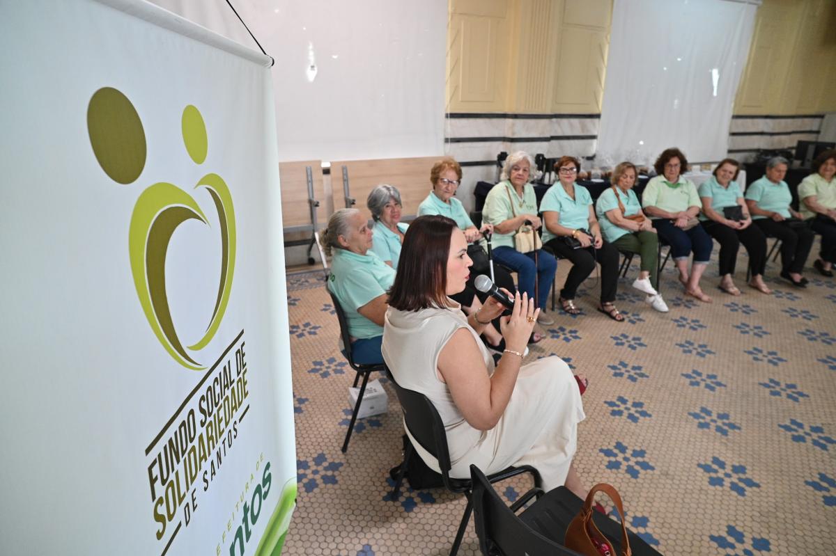 Voluntárias do Fundo Social de Solidariedade de Santos (FSS) participaram, na quarta-feira (25), de uma roda de conversa com o tema 'Mulheres de Valor', conduzida pela consultora em imagem pessoal e corporativa Clara Laface. Realizado no auditório do 5º andar do Paço Municipal, no Centro, o encontro reuniu mulheres com mais de 60 anos em uma tarde marcada por reflexão, troca de experiências e fortalecimento da autoestima.