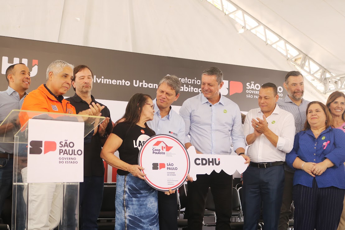 O evento contou com a presença do governador de São Paulo, Tarcísio de Freitas, prefeito de Santos, Rogério Santos, além de autoridades da região e representantes da Companhia de Desenvolvimento Habitacional e Urbano (CDHU) e Cohab Santista.