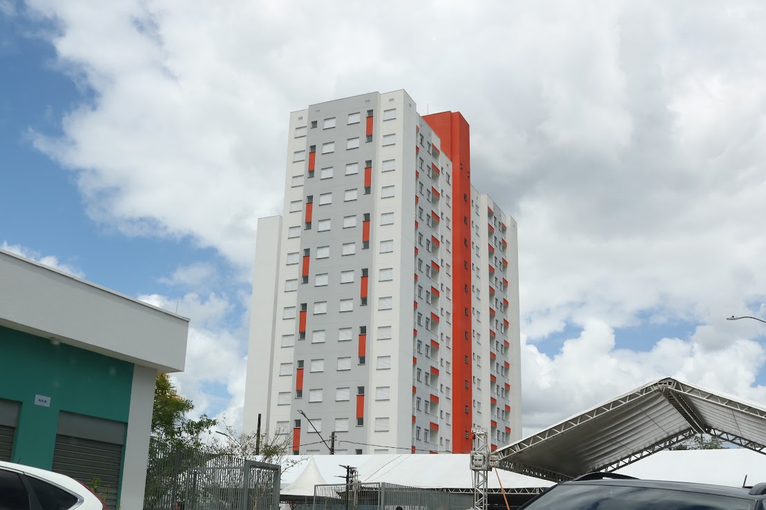 O empreendimento, construído pela CDHU, está em área cercada por muito verde e conta com 174 apartamentos, distribuídos em duas torres, com varanda, elevadores, área de lazer e espaço pet.