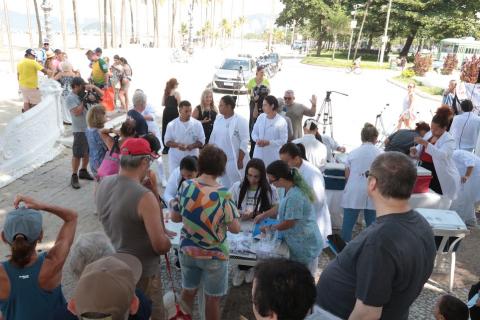 Neste sábado, foram aplicadas 3.031 doses de vacina contra a gripe, sendo 1.315 no posto de vacinação itinerante, que funcionou das 9h às 16h na Praça das Bandeiras (orla do Gonzaga, em frente à Avenida Ana Costa), e 1.706 nas sete policlínicas do Município que abriram neste primeiro dia. Nas unidades, foi possível ainda completar a carteira de vacinação com doses em atraso. Além da gripe, foram aplicadas 375 doses de outros imunizantes.
