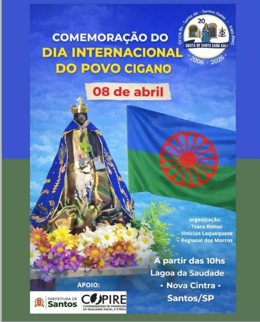 A iniciativa busca ampliar o conhecimento sobre a riqueza cultural e espiritual do povo cigano, destacando valores como respeito, identidade e liberdade. O encontro é organizado pela Prefeitura Regional dos Morros, unidade da Secretaria das Prefeituras Regionais (Sepref) da Prefeitura de Santos, Tsara Romai e Vinícius Laquequase, com apoio da Coordenadoria de Promoção de Igualdade Racial e Étnica (Copire) da Secretaria da Mulher, Cidadania, Diversidade e Direitos Humanos (Semulher).