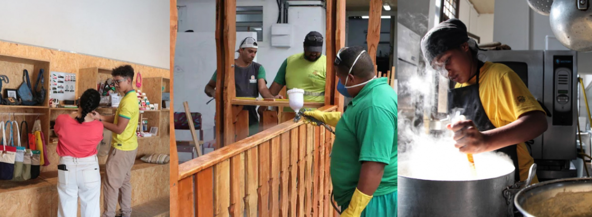 Combinando inclusão e sustentabilidade, a Ecofábrica ensina marcenaria ecológica com o reaproveitamento de madeira reciclada — uma proposta que une consciência ambiental à geração de renda. Na gastronomia, o Restaurante-Escola Estação Bistrô, mantido em parceria com a Universidade Católica de Santos, capacita jovens em situação de vulnerabilidade nas áreas da culinária e da hospitalidade, ampliando suas chances no mercado de trabalho.