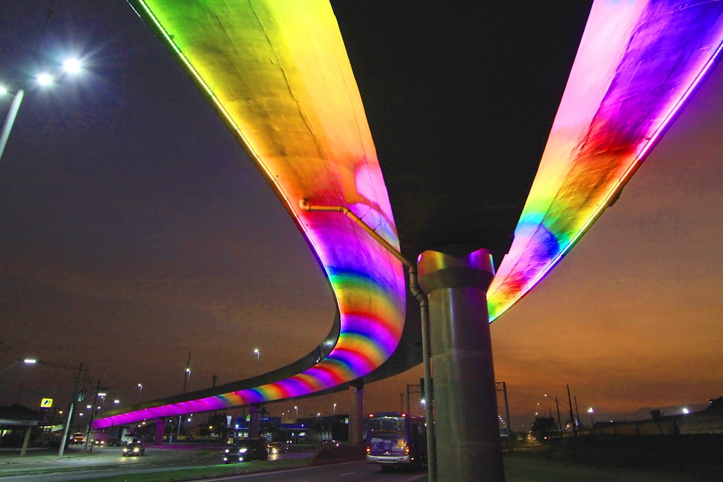 Viaduto com as cores do arco-íris na Entrada da Cidade marcam celebração. Foto: Carlos Nogueira/PMS