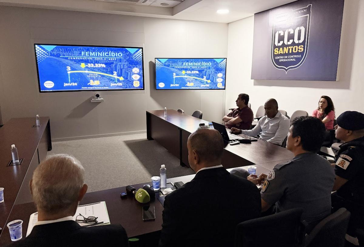 A coletiva também marcou o anúncio de um projeto-piloto que será implantado em Santos pela SSP para facilitar o registro de ocorrências de violência doméstica e descumprimento de medidas protetivas.