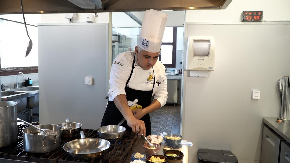 Como parte da programação, o chef Júnior Monteiro Leite comandou uma aula-show para ensinar o preparo da Meca Santista, no Restaurante-Escola Bistrô de Santos (Valongo), nesta quinta-feira (16). Ele atua na cozinha do restaurante desde 2006 responsável pela criação de cardápios, supervisão e treinamento de equipe, além de ser professor dos cursos do SINHORES. Confira abaixo a receita dele.