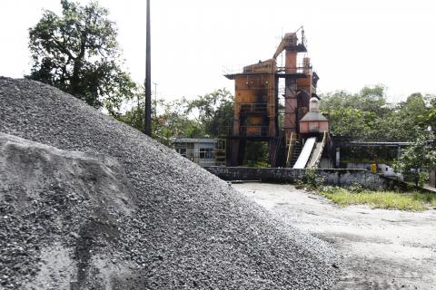 Atrás do prédio com as salas administrativas, laboratório de controle e de uma grande área verde, está a usina; para entender o passo a passo, o trabalho inicia com a coleta das pedras, que podem ser vistas em grandes montes a céu aberto, numa área chamada de estoque do material agregado.