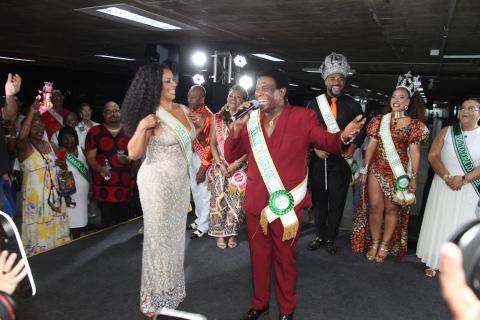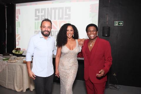 A Secretaria de Cultura oficializou, na noite desta sexta-feira (14), a nomeação de Valéria Valenssa como Embaixadora do Carnaval Santista. A cerimônia, realizada com presença de autoridades, convidados e representantes das escolas de samba, marcou a abertura da quarta edição do Santos Arte Preta, no Cultural Patrícia Galvão. O evento contou com a participação da Corte Carnavalesca de Santos, composta pelo Rei Momo, Rainha e Princesas, que receberam a nova embaixadora durante a solenidade.