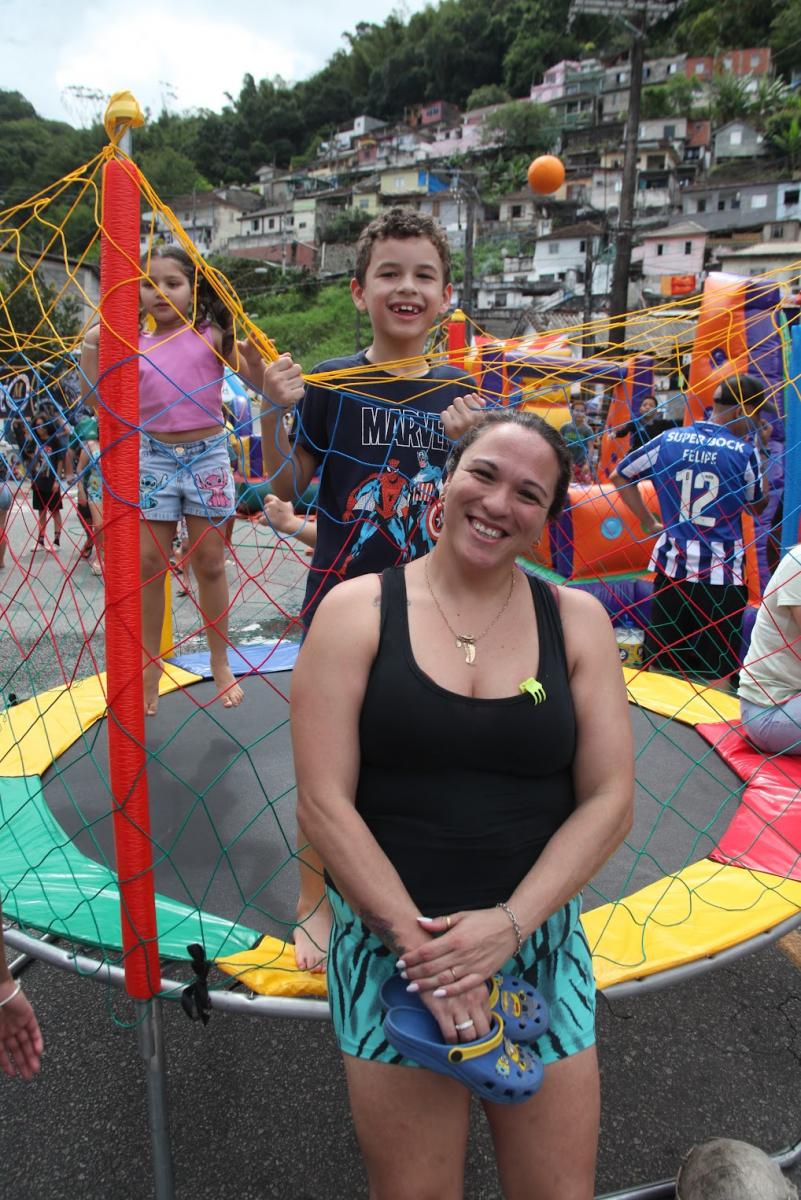 “É muito bom. As crianças aqui do Marapé não têm onde brincar. Quando tem uma oportunidade assim, de fechar a rua e trazer brinquedos, é uma liberdade para eles”, disse Tatiane Pereira da Silva, 38 anos, moradora do bairro, que levou o filho Marcelo, 7, para participar das atividades.