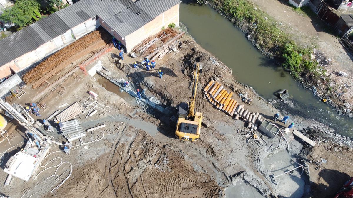 Fundação de sistema contra enchentes na Zona Noroeste, em Santos, será concluída até agosto