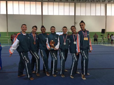 A equipe de ginástica rítmica de Santos ficou com o terceiro lugar nos Jogos Abertos, disputados em São Carlos. Ubatuba ficou com o título e São Bernardo do Campo em segundo lugar. Neste domingo (18), as santistas foram as campeãs no individual (somatória por aparelhos) e ficaram em quinto nas apresentações do conjunto. Destaque da competição individual, Layla Salim, encerrou a carreira de atleta em grande estilo, foi ouro na bola e na fita.