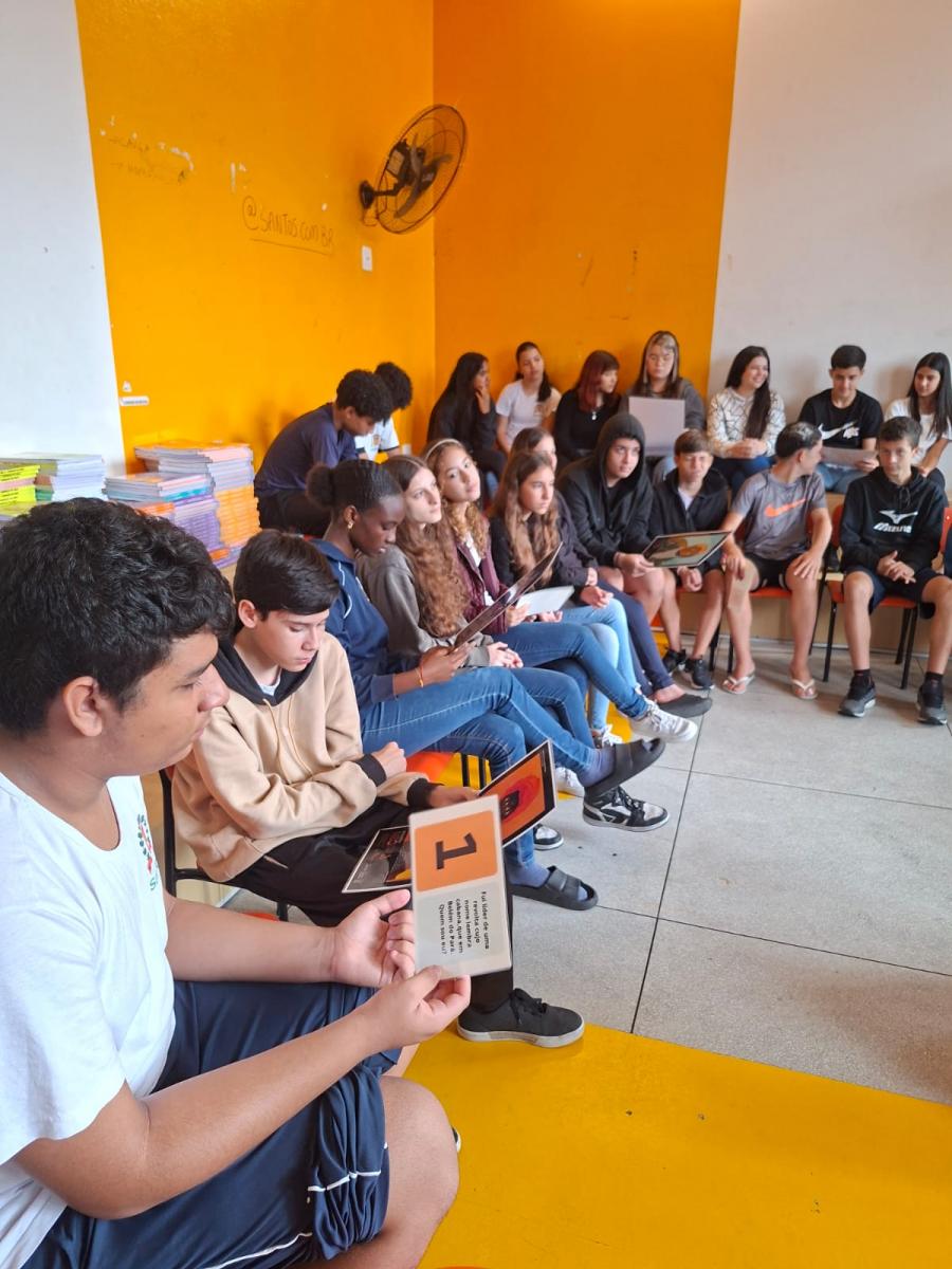 A roda de conversa também propôs reflexões por meio de questões disparadoras, estimulando os alunos a pensar sobre como o racismo ainda atinge a sociedade e a importância de mudanças de postura diante de práticas discriminatórias.