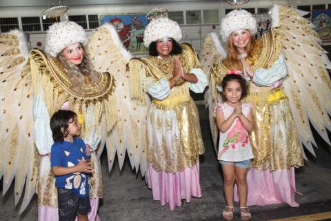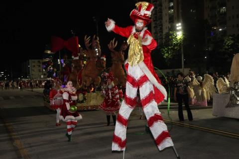 Neste sábado, a parada foi aberta em grande estilo. A bordo de um drone de três metros, o Papai Noel ‘sobrevoou’ a Passarela, saudando centenas de pessoas. Em seguida, a orquestra, dirigida pelo maestro Chanel Rigolon e acompanhada por banda composta de instrumentistas de cordas e percussionistas que atuam no carnaval, abriu a noite com clássicos natalinos da MPB como “Jesus Cristo”, “Então é Natal” e “Anunciação”.