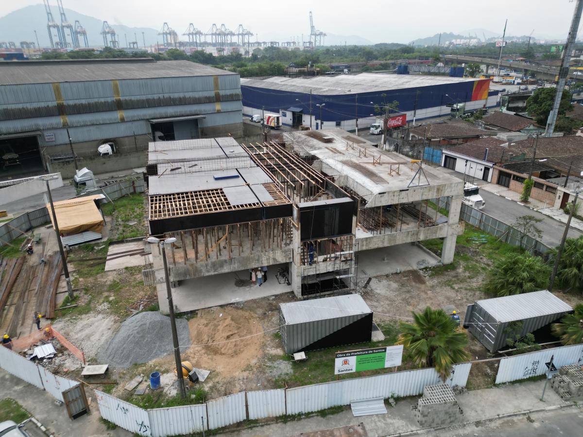 As obras da nova UME Hilda Rabaça (Vila Haddad, Zona Noroeste de Santos) estão avançando por meio de parceria da Prefeitura com a iniciativa privada.