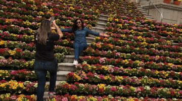 Santistas se encantam e tiram fotos com a decoração florida da Primavera Criativa